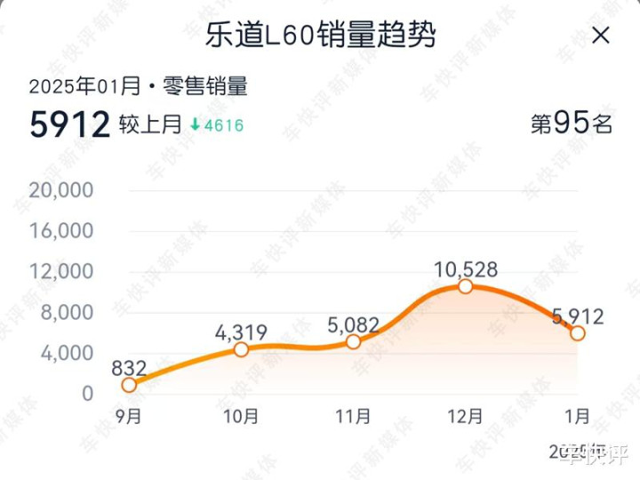从乐道L60上市这几个月的整体表现来看,跟Model Y之间的差距用“天壤之别”来形容一点都不为过。除了去年12月单月销量过万之外,9月、10月、11月和今年1月,乐道L60月销量均没有突破6000辆。如果单从销量的层面来看的话,主观的认为乐道L60算不上是一款成功的车型。